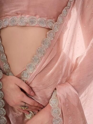 ORHANS Women's Chiffon All Over Fix Diamond & Lace Work Saree With Art Silk Matching Unstitched Blouse Piece