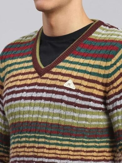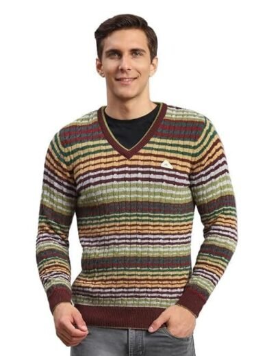 Monte Carlo Mens Solid V Neck Full Sleeve Wool Casual Sweater