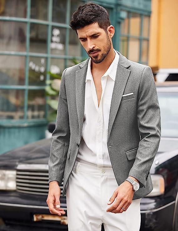 Men’s Casual Suit Blazer Jackets Lightweight Sports Coats One Button